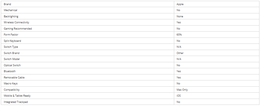 Overview Reviews Product Description Details Specifications Product Videos Custom Field Product Reviews (No reviews yet) Write a Review Write a Review × Apple Apple MXApple Magic Keyboard, Bluetooth US, White, Dimensions (HxWxD): 1.09 x 27.89 x 11.49cm, Weight: 243g, 1 Year Warranty Rating * Select Rating 1 star (worst) 2 stars 3 stars (average) 4 stars 5 stars (best) Name *Email *Review Subject *Comments